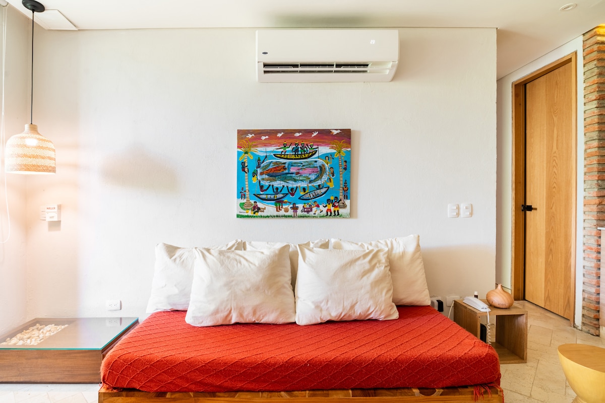 El lugar perfecto para disfrutar del lujo y la tranquilidad en Cartagena. Nuestra suite ofrece un ambiente exclusivo único con vistas frente a la playa del magnífico océano Caribe. Nuestra unidad ha sido diseñada para huéspedes que buscan disfrutar de la combinación perfecta entre ambientes zen y de alta gama. Escucha el chapoteo de las olas cuando te despiertes y cuando estés listo para un sueño profundo. Este moderno edificio también cuenta con servicios de primer nivel como gimnasio, jacuzzi y su popular piscina infinita con impresionantes vistas.