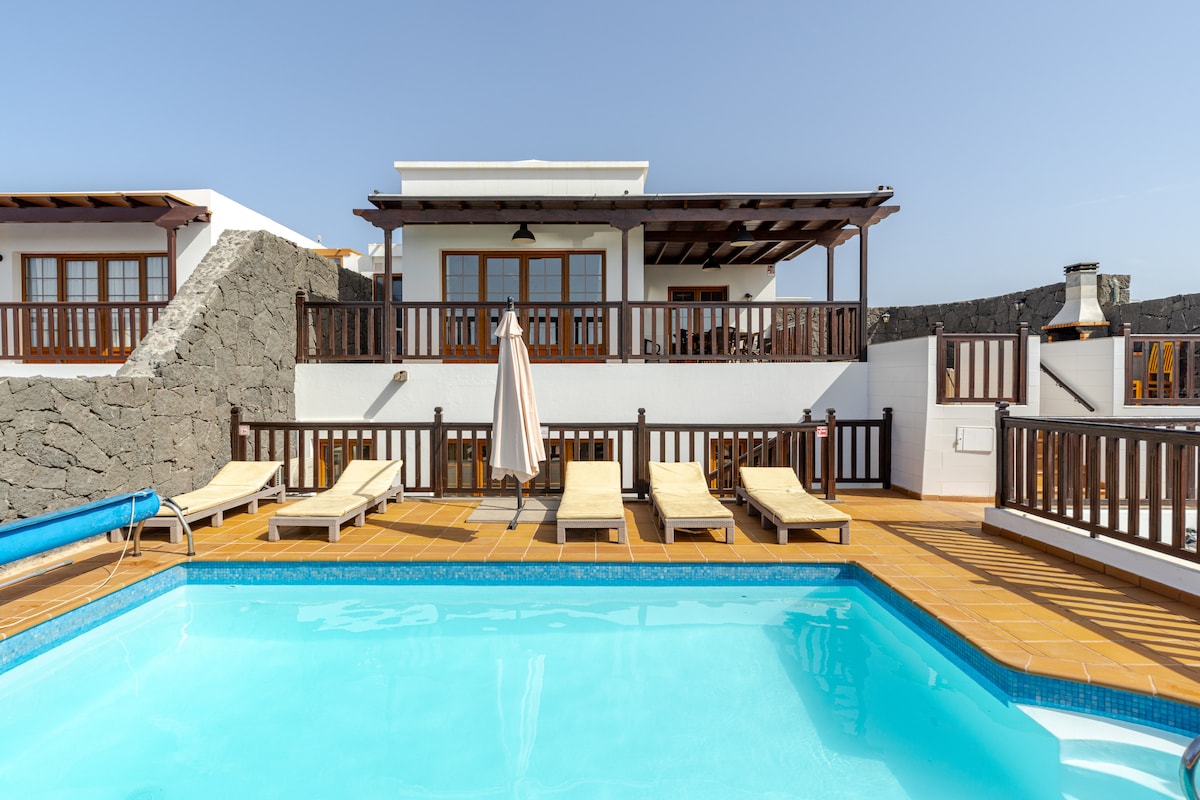 Villa reformada en julio 2025 con espectaculares vistas al mar, Fuerteventura y la Isla de Lobos. Cuenta con 4 dormitorios, 4 baños, 2 piscinas privadas (una climatizada), WiFi de alta velocidad, cocina equipada, zona de colada, jardín, zona de barbacoa, ping-pong y petanca. Ideal para familias o parejas que buscan privacidad, confort y relax en un entorno exclusivo de Lanzarote.