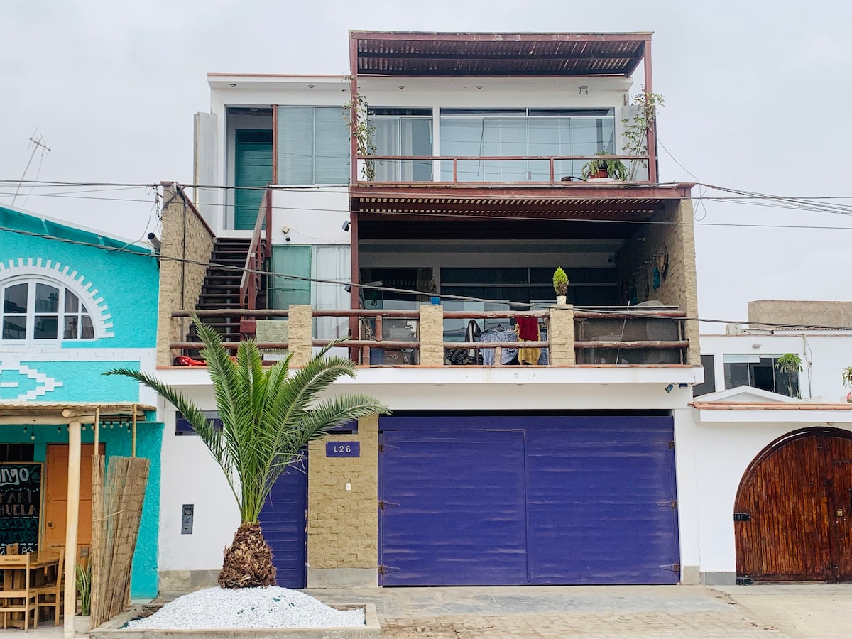 You will feel in a cruise just for you! All areas are for exclusive guest use (no sharing with others) 3 rooms, kitchen, dining room, leaving, terrace, wifi, cable, garden, pool, parking for 2 cars 40 meters to the beach Best spot for surfing Caballeros, Señoritas (direct view) or just chill and relax with the sea view Families and group of friends are welcome. The house have plenty of space for you to have fun, listen your music and enjoy one of the best views in Lima with total privacy