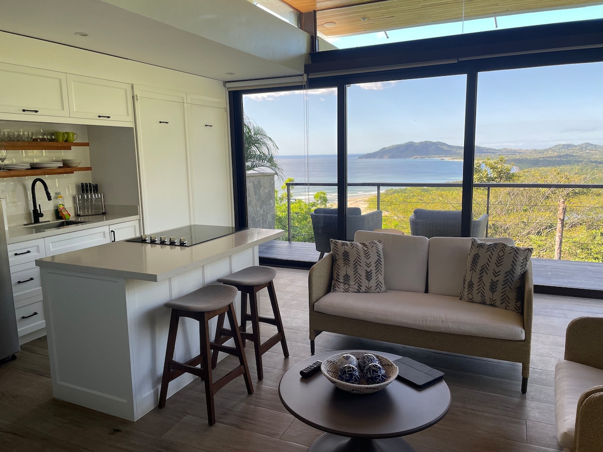 Desde esta ubicación en la cima de la colina sobre la bahía de Tamarindo, disfrutarás de una vista panorámica que es increíble. ¡Verás a qué nos referimos cuando llegues! ¡La Casita ofrece una cama tamaño king y una cama tamaño queen desplegable, totalmente equipada con baño privado, cocina y un pequeño balcón con vistas al mar y perfecto para ver monos en los árboles circundantes! ¡También tendrás acceso al espacio social de la propiedad, incluida una terraza cubierta con brisa junto a la piscina con vistas al mar y el salón en la azotea!
