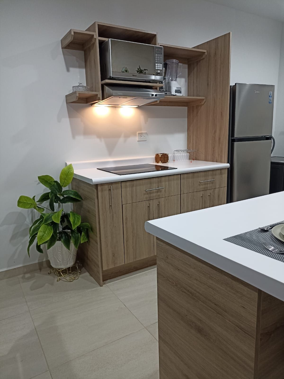 Habitación privada nueva y totalmente equipada, ideal para descansar o trabajar cerca del mar. Cuenta con cama King Size, baño completo, cocineta equipada, TV y balcón privado. Ubicada a una cuadra de la playa, dentro de un condominio con alberca, área de ejercicio y ambiente tranquilo. Comodidad, ubicación y descanso en un solo lugar.