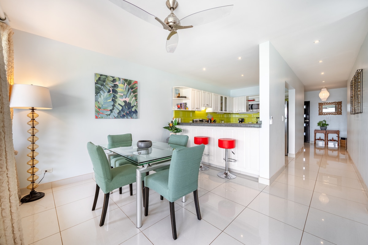 Sumérgete en una comodidad total mientras disfrutas de la brisa tropical del océano. Ubicado en una idílica playa semiprivada, simplemente abre las puertas del balcón para disfrutar de unas vistas impresionantes. Este apartamento tiene capacidad para un máximo de 6 personas. Cuenta con una cocina totalmente equipada y 2 comedores separados, todos con vistas al mar. Muy cerca hay restaurantes y excursiones que incluyen esnórquel, tirolesa, vela y mucho más. Así que, ¿a qué estás esperando? ¡Ven y disfruta!