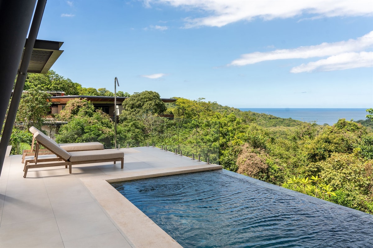 Disfruta de una hermosa villa con piscina infinita privada, ubicada en una comunidad cerrada, cerca de las mejores playas de Costa Rica. Renovada en 2025, ofrece confort moderno y vistas impresionantes. • 2 habitaciones con aire acondicionado y baño privado • Planta abierta con cocina equipada y salón acogedor • Comedor exterior para disfrutar de atardeceres únicos • Wi-Fi, alarma y estacionamiento cerrado ¡Reserva ahora tu estancia!