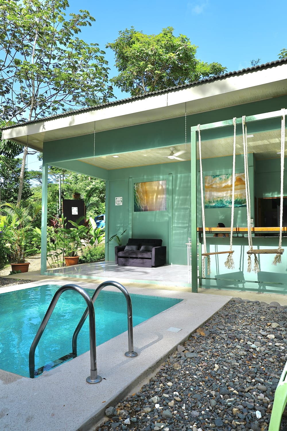 Uno de los primeros Airbnbs en Jaco, Beach Bungalow desde 2015 hospeda personas del mundo entero. "Un pedacito del paraíso" es como los huéspedes dicen en sus evaluaciones. Bungalow totalmente equipado, confortable, colchones nuevos, limpieza 5 estrellas durante esos 7 años y ubicado en una zona muy tranquila de Jaco, tan solo a 2 minutos en carro hacia la playa y centro. Local perfecto para descansar en familia o pareja y disfrutar de una encantadora piscina con catarata y jets de hidromasaje.
