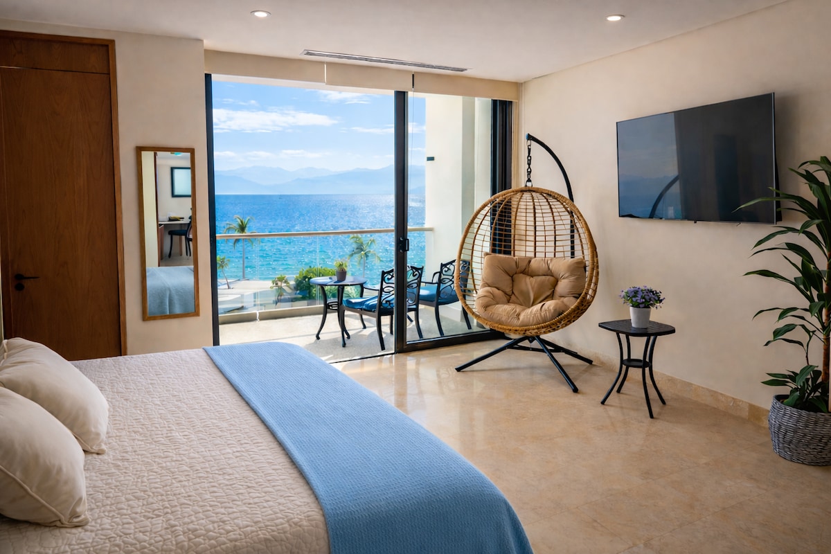 Vive La Cruz de Huanacaxtle con vista a la Bahía de Banderas Estrena este condominio moderno con vistas abiertas a la Bahía de Banderas, ubicado a pasos de la marina, el mercado dominical y excelentes restaurantes de mariscos. Una combinación perfecta entre comodidad, ubicación y estilo frente al mar. Disfruta dos albercas (incluida infinity con vista al océano), gimnasio equipado y áreas comunes pensadas para relajarte y disfrutar el clima de la costa. Ideal para parejas y familias.