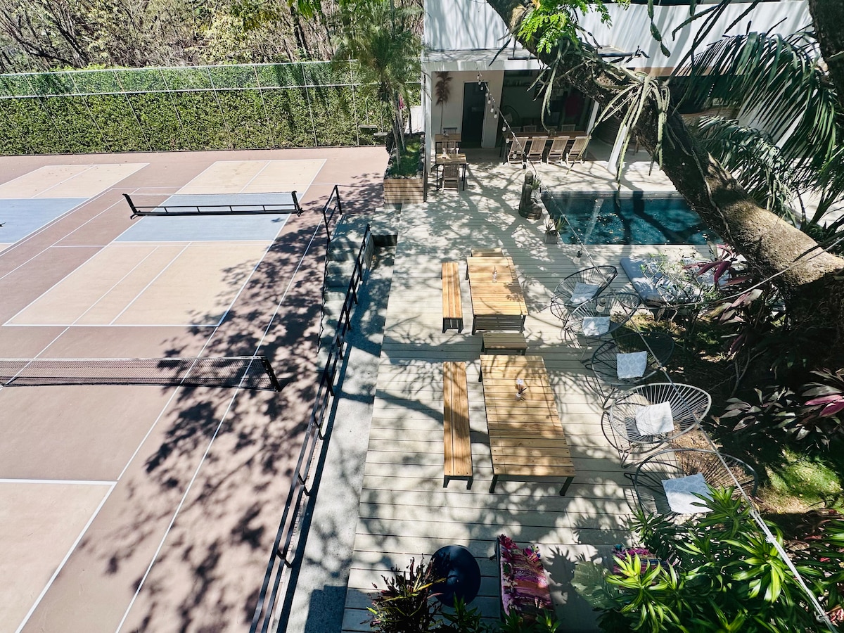 Inmerso en la naturaleza, este es un alojamiento totalmente nuevo, elegante y moderno. Detallado con un exclusivo toque rústico, ofrecemos una experiencia gastronómica y vinícola única en nuestra mágica terraza en la copa de un árbol. Situado en el centro de la ciudad, pero en un barrio tranquilo, se encuentra a 5 minutos a pie de la prístina playa de Tamarindo. 2 dormitorios / 2 baños, aire acondicionado, cocina totalmente equipada, terraza, experiencia gastronómica al aire libre en la copa de un árbol, aparcamiento gratuito en las instalaciones. Desconecta de la rutina en este alojamiento único y relajante.