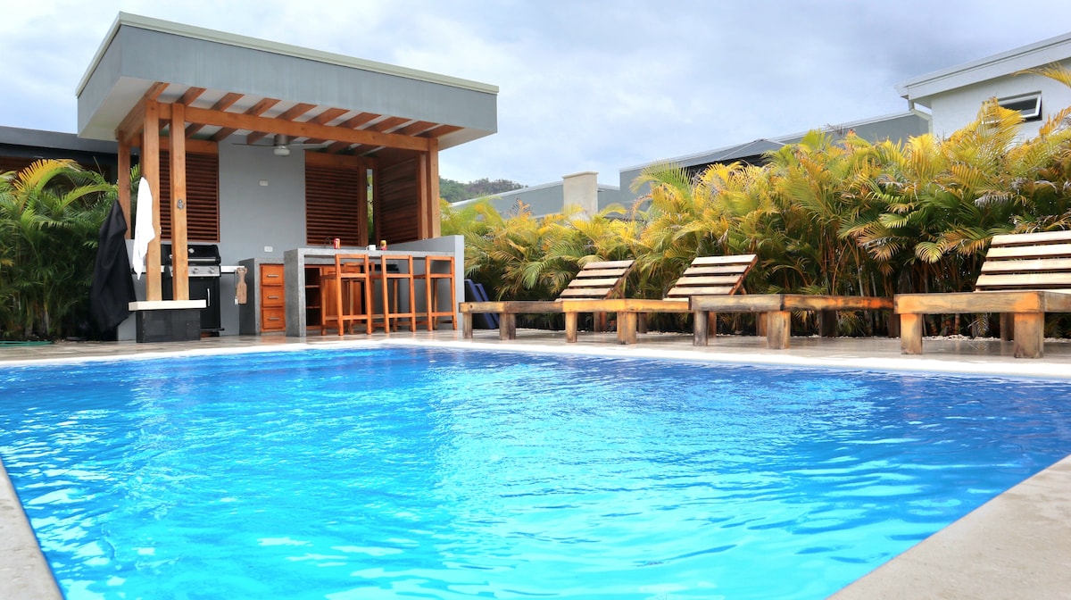 Relájate en esta villa privada de primer nivel con tu propia piscina, a solo 3 minutos a pie de la playa, perfecta para descansar con comodidad y privacidad. Situado en la península de Nicoya, en la Zona Azul de la playa de Tambor, en una comunidad cerrada con seguridad 24/7 y un hermoso campo de golf de 9 hoyos. Concepto abierto y luminoso con 3 camas y 2,5 baños. Barbacoa de carbón. En la comunidad: tienda de comestibles, restaurante, música en vivo y una cafetería. Aire acondicionado. Internet de alta velocidad de 100 Mbps. Estacionamiento gratuito. Se admiten mascotas.