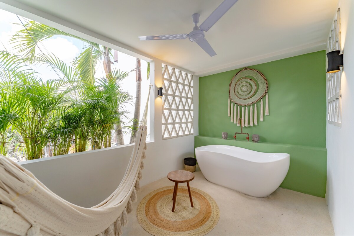 Boho-Chic en Mamitas, jacuzzi privado y vistas al dosel
