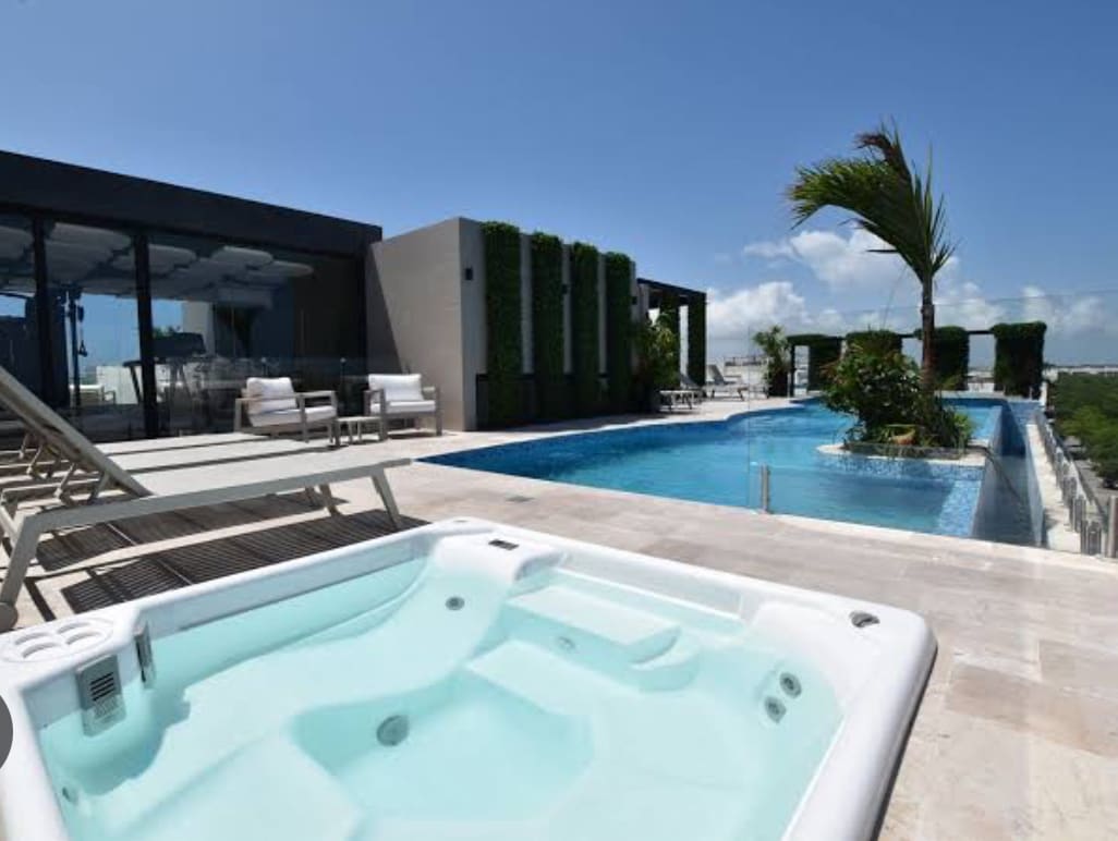 ¡Disfruta del lujo y la comodidad en nuestro departamento! Cuenta con 1 recámara elegante con vista al mar, de una terraza privada y amplia con vista espectacular. A pocos minutos caminando de la playa y la quinta avenida. Estacionamiento privado, seguro y gratuito. Rooftop con vista al mar Caribe, alberca, jacuzzi, Gym y baño de vapor. Cuenta también con lobby y su recepción y seguridad 24/7. ¡Reserva ahora y vive una experiencia inolvidable!