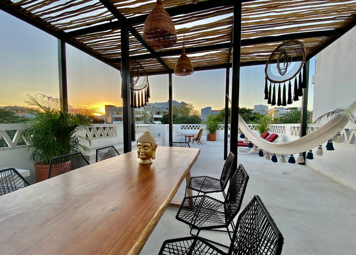 You'll have the best views in town! Enjoy your private rooftop pool oasis and panoramic views of Playa del Carmen and Caribbean Sea. This penthouse suite is a short walk to beaches, restaurants and shopping. Located right on the famous Quinta Avenida our hideaway, at StayCielo, is close enough to walk to nightlife but far enough from the noise that you can enjoy a peaceful evening at home. too. A 5 min walk to Martina & Encanto Beach Clubs as well as great dining options. Message me to chat!