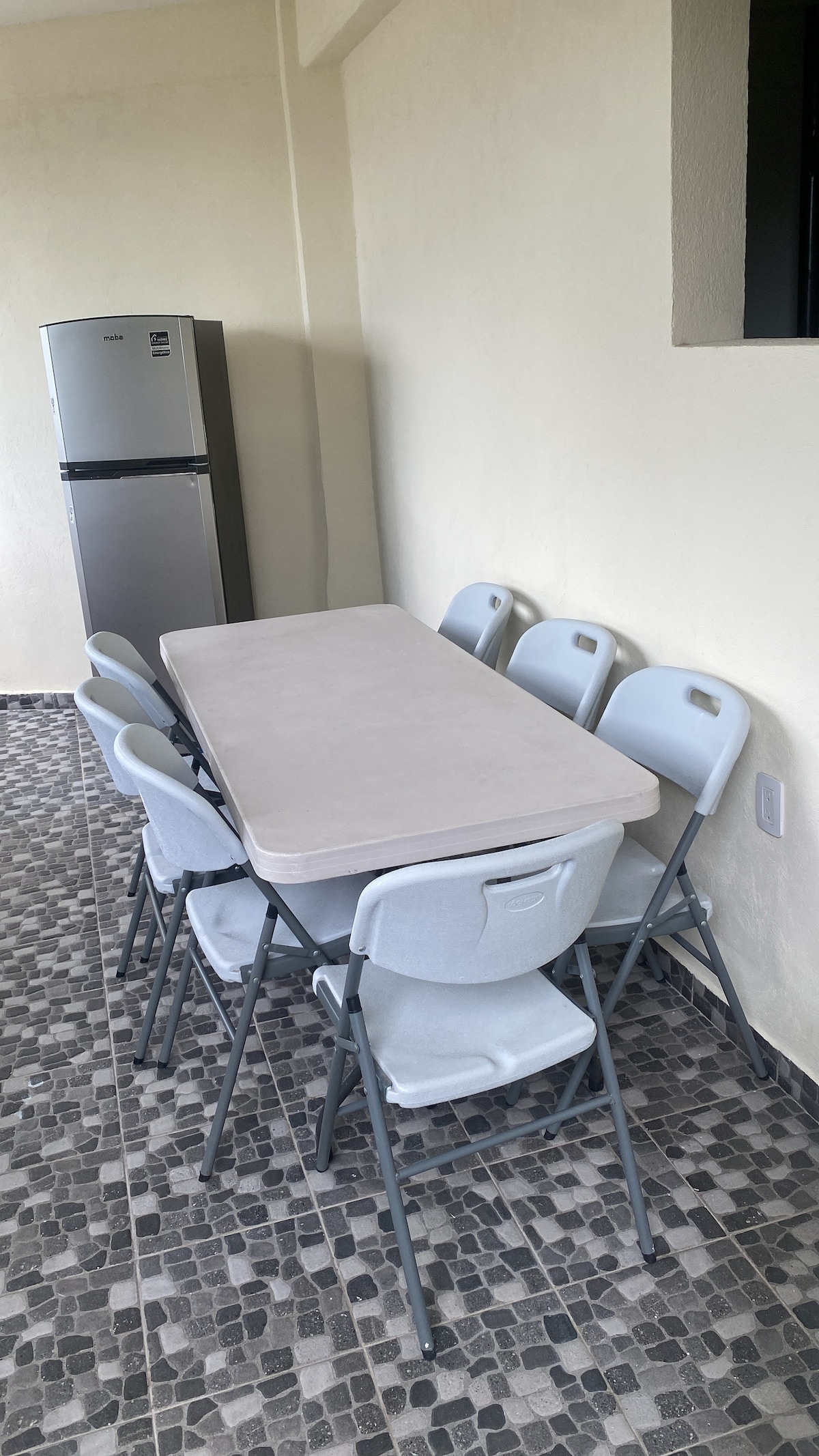 Hola qué tal la casa Audi (Privacidad) tenemos Estacionamiento para moto, carro, muy seguro, un resividor afuera (mesa y sillas), al entrar puedes ver qué no ahí escalones, una sala grande un comedor hermoso, la cocina bien equipada y con todo lo básico para que cocines tranquilamente, dos recamaras grandes con ventilador, dos baños completos con ( toallas, jabón, papel higiénico) ideal para tu higiene personal , cuenta con una hermosa terraza donde puedes descansar.
