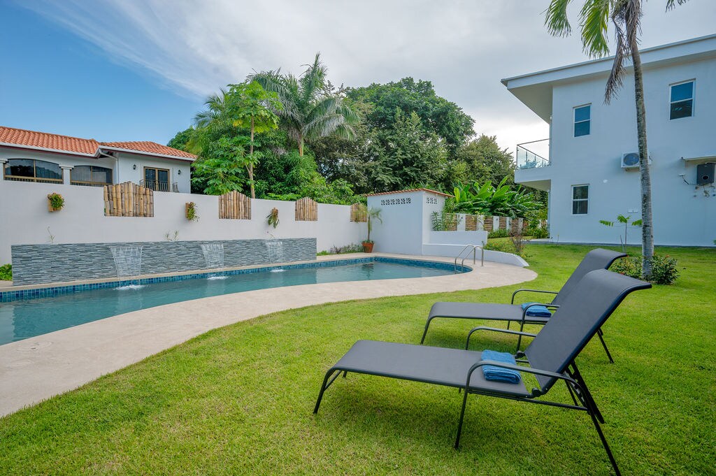 Escucha las olas desde la privacidad de nuestra terraza y crea recuerdos inolvidables en este alojamiento único y familiar a pocos paso de la playa con piscina privada. El palmar es una comunidad tranquila con varios restaurantes disponibles a unos pasos de la casa. La propiedad esta totalmente cercada para la tranquilidad y seguridad de hijos y sus mascotas adicional tienes wifi, TV cable en ambas habitaciones y aires acondicionados en la sala comedor y en todas las recamaras
