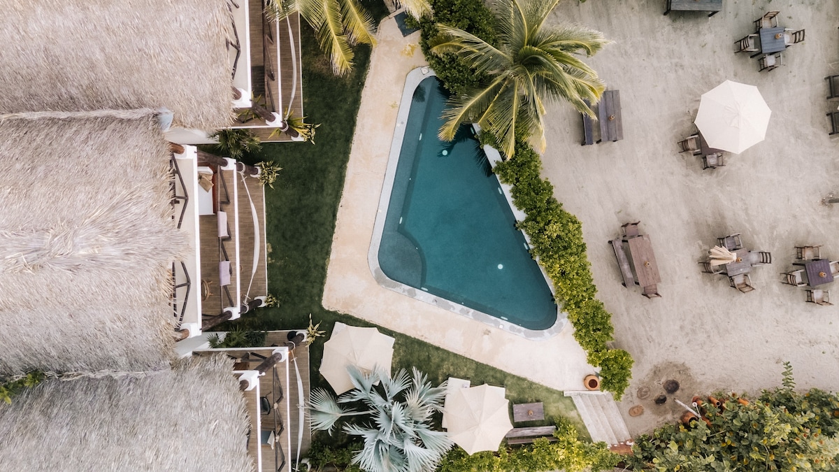 Welcome to our hidden gem! Your stay includes a a daily breakfast, all set against stunning ocean and mountain views. For an extra touch, opt for our Cacao Ceremony, yoga class with Laura (@lauraortegayogaa) or massage packages. Unwind in inviting natural spaces, a fully equipped kitchen, and a private biopool, with daily housekeeping and high-speed WiFi. Follow us on Insta @casadelatierramx. Get ready to disconnect from the hectic pace of everyday life in your Bamboo House!