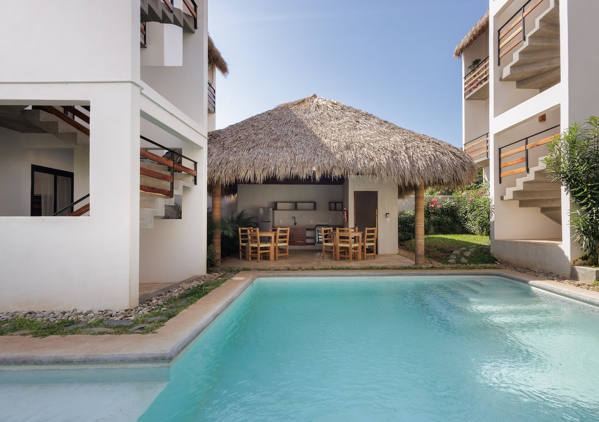 COMO SE PRESENTA EN CONDE NAST: El Loft en Casona del Sol, tu oasis en Rinconada. Después de una exquisita renovación, esta espaciosa morada ofrece el lugar perfecto para hospedar y relajarse. Sumérgete en el lujo con una gran cocina y un espacio al aire libre compartido con una piscina profunda a reacción y una elegante palapa. Situada a pocos pasos de la famosa escena gastronómica de Puerto y a pocos pasos de playas vírgenes, Casona del Sol cuenta con una de las ubicaciones más codiciadas de Puerto Escondido.