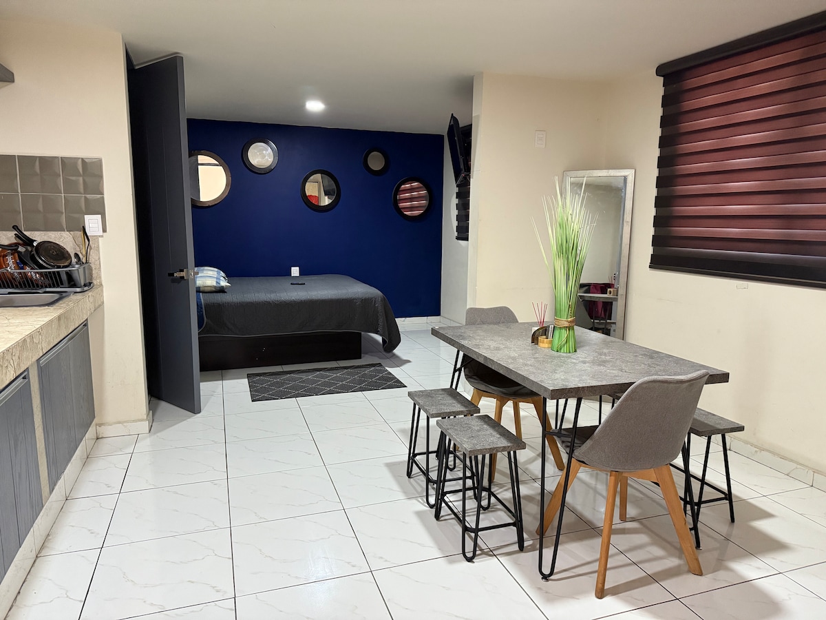 Relájate en esta escapada única y tranquila. Vienes de paseo o de trabajo?? esta opción es para ti. Loft con todas las comodidades para pasar una estancia increíble. En una zona exclusiva donde tienes las mejores vialidades y acceso a cualquier punto de la ciudad. El departamento esta totalmente equipado, cuenta con una cama matrimonial y un sofa cama individual, un escritorio de trabajo, wifi, cocina totalmente equipada, áreas de esparcimiento y estacionamiento exclusivo para un automóvil.
