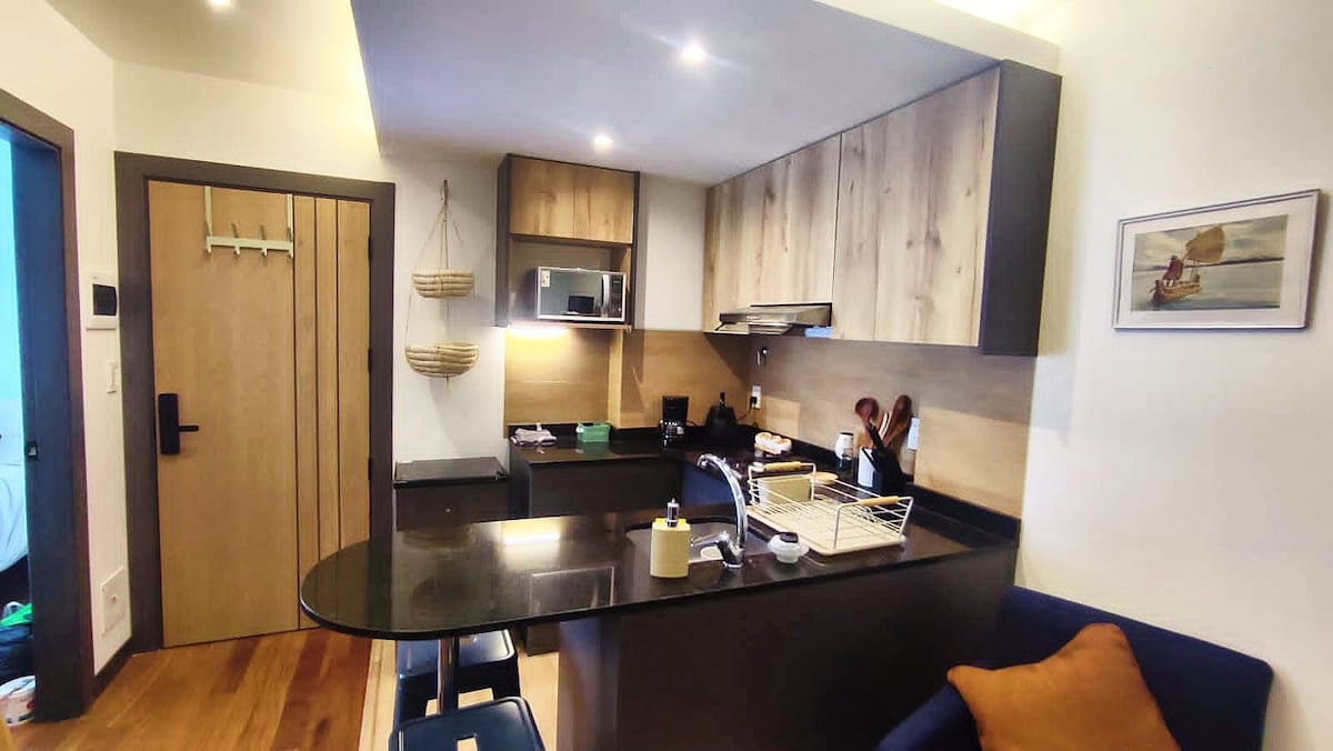 El departamento es encantador! La habitación cuenta con material de línea hotelera para un descanso confortable, la cocina y sala cuentan con todas las comodidades necesarias. La iluminación es perfecta! El departamento se encuentra en una zona completamente segura y centrica, a pasos de supermercados, embajadas, hospitales, bancos, cine, estaciones de teleférico, cafeterías, centros comerciales, bares de rock, discotecas, etc.