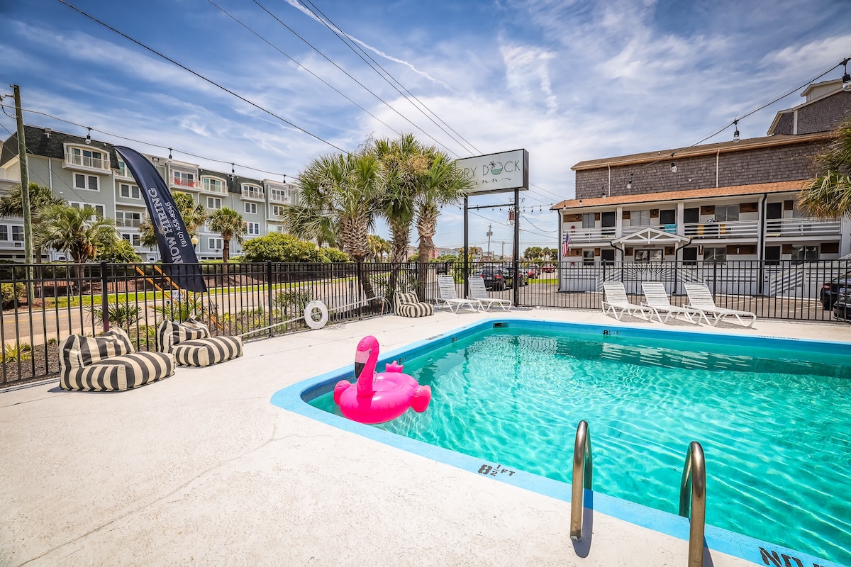 Esta habitación Queen está situada en el centro del Dry Dock Inn en Carolina Beach. Las unidades incluyen una cama tamaño queen, microondas, mininevera y baño privado. Los huéspedes podrán acceder a 2 piscinas en la propiedad y a un patio de descanso, barbacoa y juegos al aire libre. La playa y el paseo marítimo están a unas 2 manzanas de distancia, ¡a solo un corto paseo! Los restaurantes están a poca distancia a pie, junto con tiendas locales y atracciones que no te puedes perder. *Nota: ¡No todas las unidades tienen el mismo aspecto!