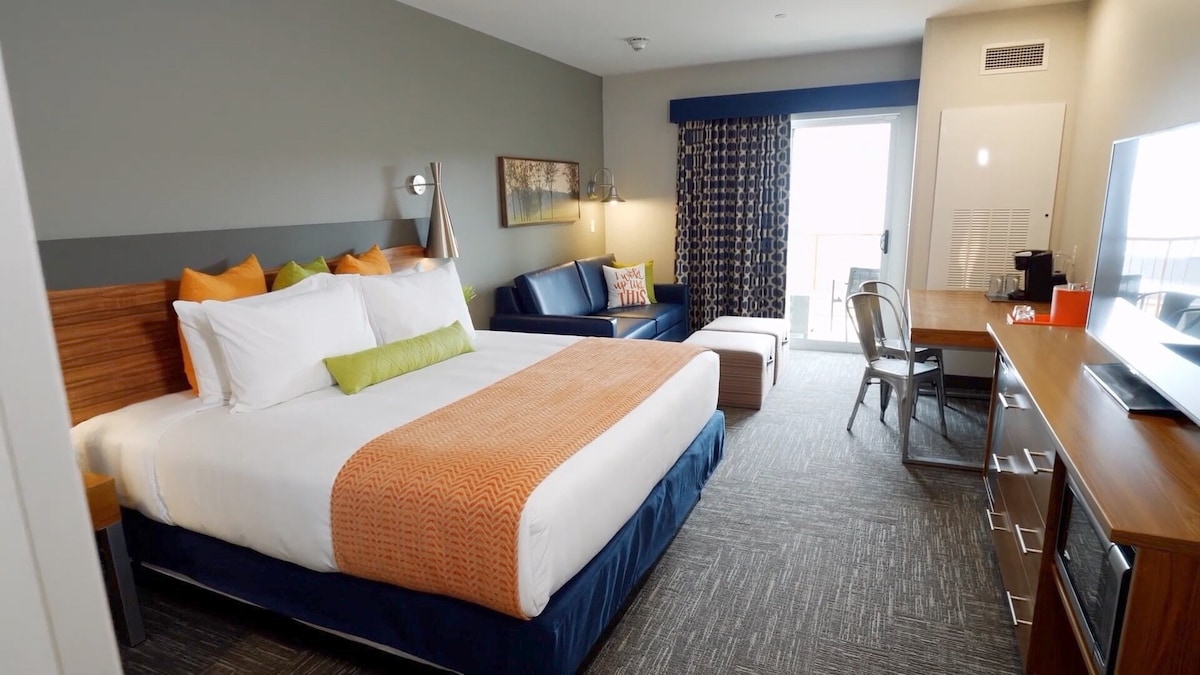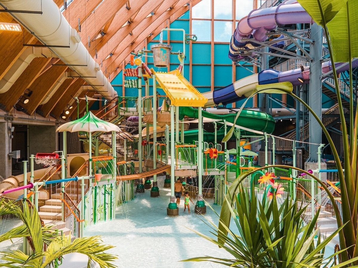En el parque acuático cubierto más moderno y de última generación de los Estados Unidos, siempre hay algo divertido que hacer: entre toda la natación, el deslizamiento y las salpicaduras, puedes echar un vistazo a una gran variedad de actividades que incluyen una galería con más de 100 juegos, etiqueta láser, un campo de cuerdas altas, bolos, una pared de escalada, experiencias de realidad virtual y más. O escapa de las emociones y relájate en el spa o explora una de las 6 rutas de senderismo del hotel.