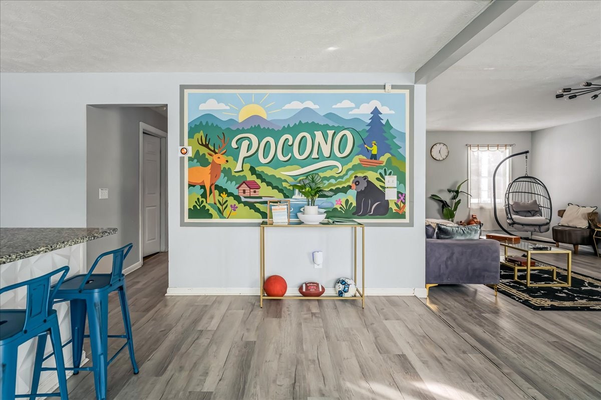 Escape to a cozy fall getaway near Kalahari, Mount Airy Casino, Crossings Outlets, Lake Wallenpaupack, & Tobyhanna State Park 2 miles away w/ fall foliage, & mountain air, lake views, wildlife, & picnic spots. Nestled off a rugged private road. This spa style retreat has a soaking tub, rain shower, smart lights, kitchen w/ smart stove, plush beds, LED mirrors w/ music sync, & retro arcade fun. Perfect for couples, birthday getaways or families seeking a peaceful Poconos stay w/ modern amenities.