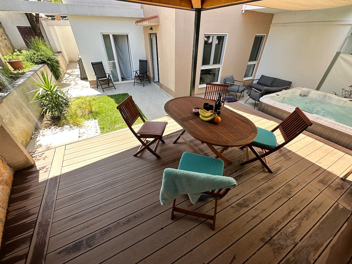 Escápate a un tranquilo oasis junto al impresionante mar Adriático. Este acogedor apartamento ofrece un refugio sereno con un toque de lujo. Relájate y rejuvenece en tu jacuzzi privado, rodeado del ambiente relajante de un oasis. A pocos pasos del encanto costero, este acogedor refugio ofrece la escapada perfecta para relajarse y sumergirse en la belleza del mar Adriático.