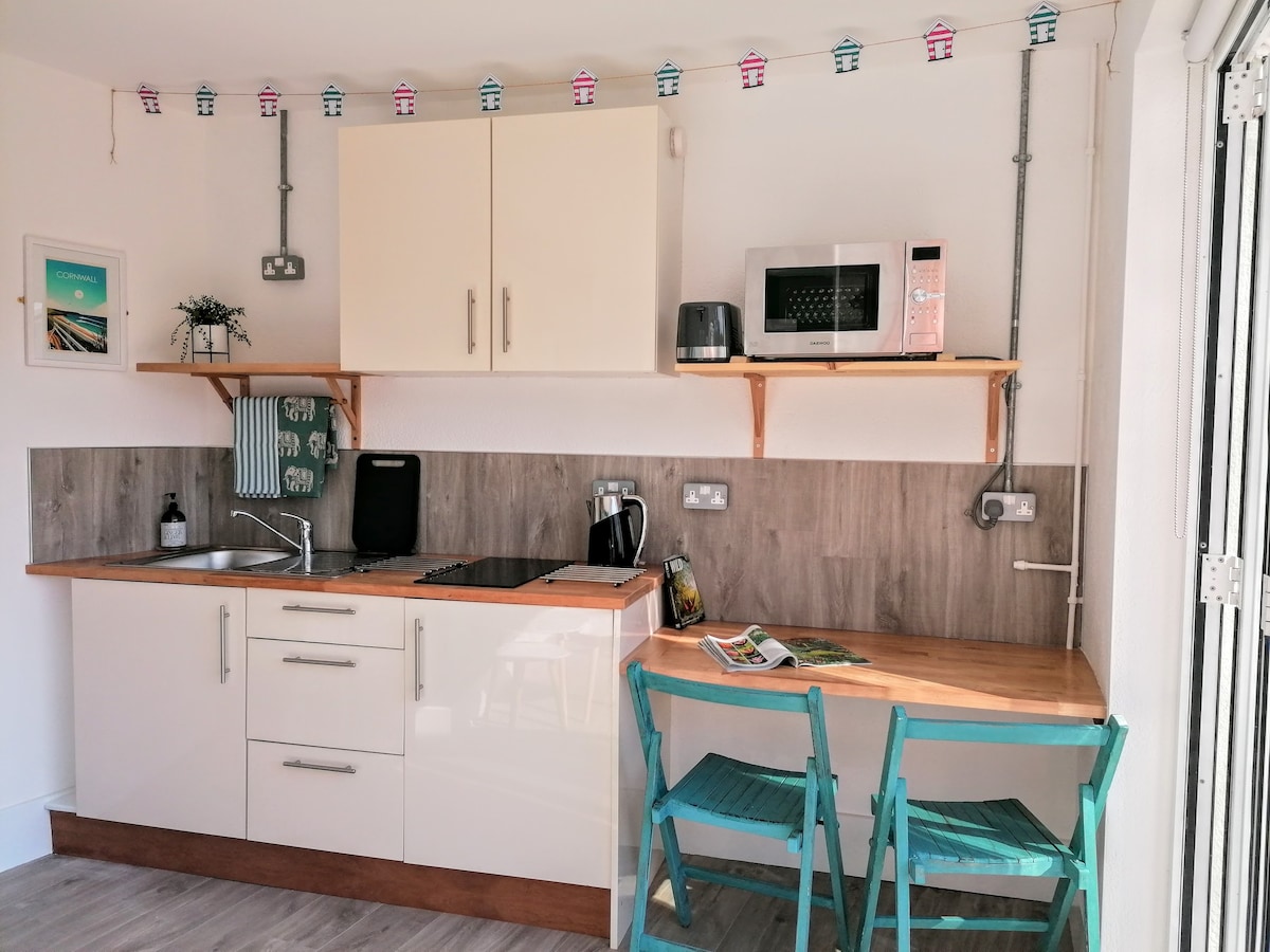 El Studio Flat está en tres niveles. Un cómodo salón con TV grande, sofá, nevera, tostadora, hervidor, microondas. Ducha, lavabo, toallero térmico y aseo en el nivel dos, dormitorio doble con vistas al jardín en el tercer nivel. Puedo sacar un solo colchón para una tercera persona adicional. Entrada independiente, estacionamiento fuera de la carretera. Situado entre Truro y Falmouth. Una ubicación extremadamente práctica. Ten en cuenta que no es apto para bebés ni niños muy pequeños.