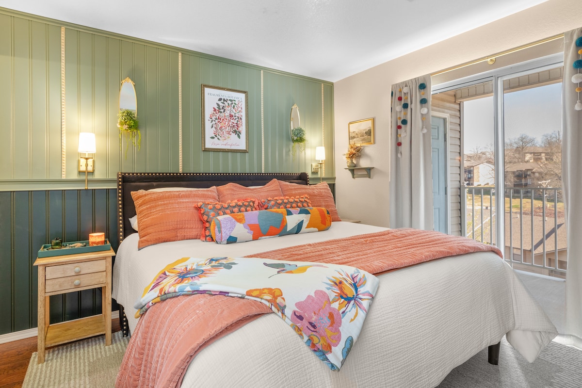 ¡Tu escapada a Branson! Condominio actualizado de 1200 pies cuadrados, 2B/2B con vista al jardín. Capacidad para 6 personas: 2 dormitorios con camas tamaño king, 2 camas plegables individuales, jacuzzi. En la unidad: cocina equipada, wifi, televisores Roku, escritorio con monitor, porche con mosquitera. Ventajas del resort: enfrente de Grille/piscinas/canchas (¡2 minutos a pie!), golf, gimnasio. Ubicación: <10 minutos a 76 Branson Strip. ¡Reserva hoy!