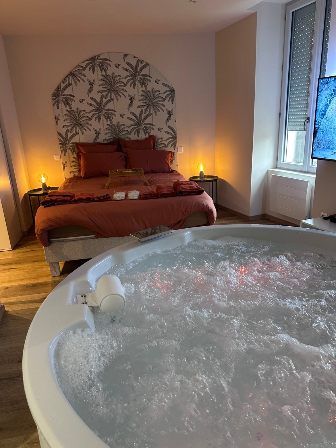 La suite Cincuenta Sombras Ponotes te sumerge en un universo sensual, travieso, apasionado y te promete una experiencia única. Disfruta de una noche romántica con bañera de hidromasaje, cama Queen Size, espejos en el techo y accesorios excitantes que sorprenderán a tu pareja y te aportarán nuevas emociones y sensaciones fuertes. «La única manera de librarse de una tentación es ceder a ella». * Desayuno incluido en su reserva (excepto los lunes por la mañana).