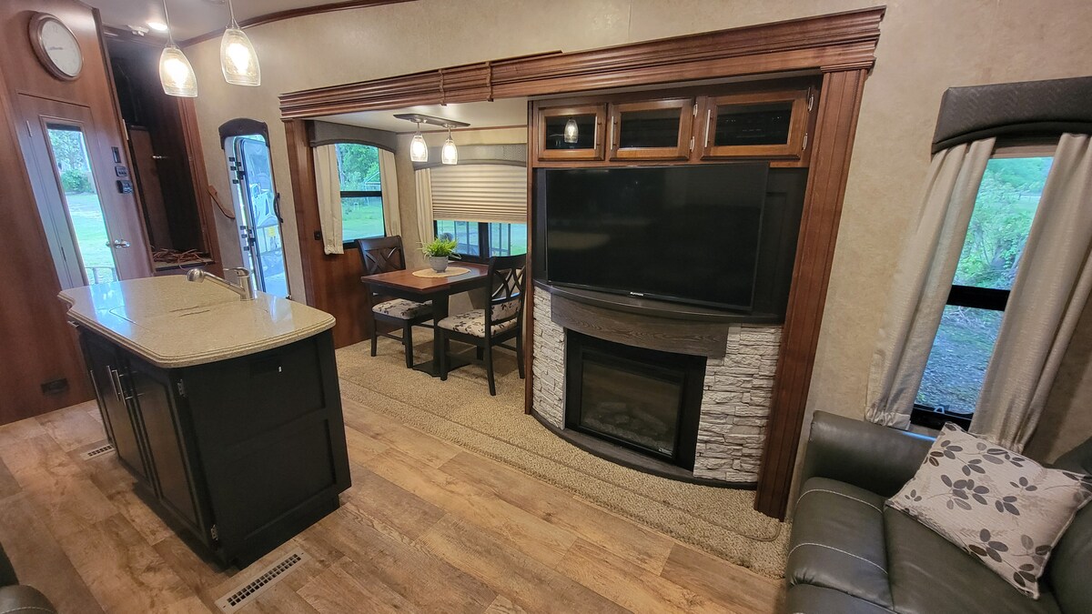 ¡Aléjate de todo cuando te quedes en el lugar perfecto para glamping en RR! ¡El lote sombreado y privado 138 tiene todo lo que necesitas para tu escapada al aire libre! La quinta rueda RV tiene 4 camas y capacidad para 7 personas con 1 y 1/2 baños. La habitación de la caravana tipo Toy Hauler se puede configurar como 2 literas tamaño queen, 1 cama y una mesa de comedor o comedor. ¡Lleva tu diversión al exterior con tu propia chimenea, parrilla, fogata de vidrio, toneladas de asientos al aire libre y carrito de golf! ¡¡¡PRIMEROS INTERVINIENTES, MILITARES Y PROFESORES, ENVIAD UN MENSAJE ANTES DE RESERVAR PARA OBTENER UN 10 % DE DESCUENTO!!!
