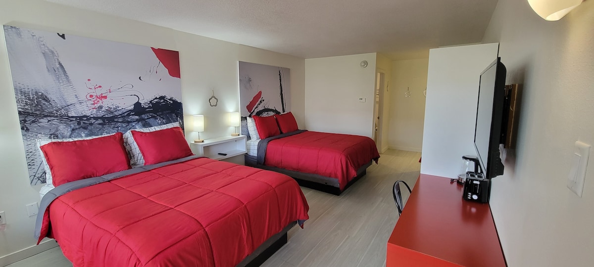 Hermosa y confortable habitación de hotel, en la zona turística del corredor de la US192 en Kissimmee. Cerca de las principales atracciones de Florida Central. A 10 minutos de Walt Disney Word, a 20 minutos de Universal Studio, Sea Word Aquatica. Puede caminar hasta Celebration, OldTown y FunSpot America. Gran piscina al aire libre, patio trasero y parque infantil, Estacionamiento gratuito durante su estadía, con seguridad.