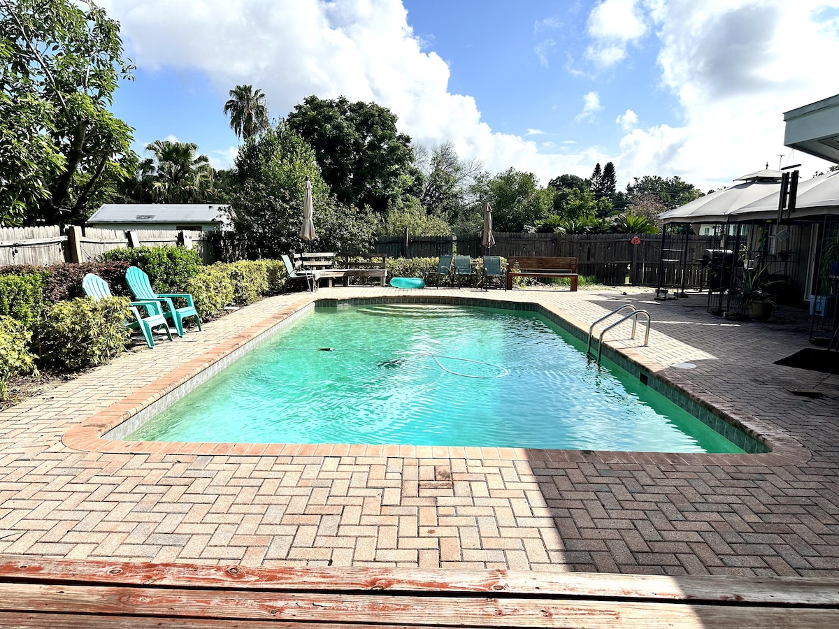 Casa familiar cerrada con 10 camas y piscina a 7 millas de Disney.