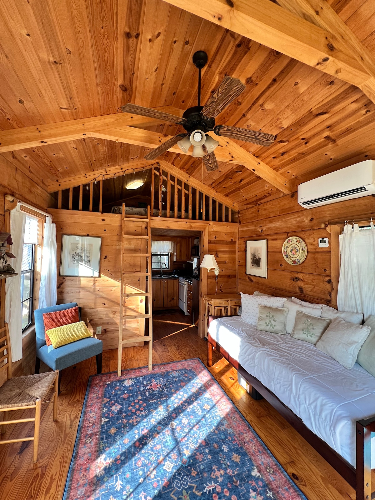 2 dormitorios: 1 cama tamaño king y 1 cama tamaño queen, 1 baño. Cocina eficiente (estamos probando un espacio adicional que hemos añadido recientemente como otro dormitorio como una habitación extra de bonificación). El anfitrión añadirá 100 dólares adicionales por separado para el uso del tercer dormitorio (mínimo 2 noches). Instalación de lavandería independiente en la propiedad donde la naturaleza te rodea con asientos y comedores adicionales en el exterior. Tranquilo y céntrico, a 3 millas del Centro Ecuestre Internacional Tryon TIEC y de las bodegas locales.