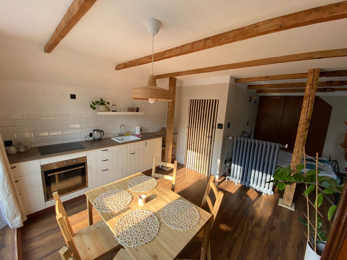 Cze Chill House es un lugar aislado rodeado de bosques, praderas y colinas lejos del ajetreo y el ajetreo de la ciudad y la prisa de la vida cotidiana. Es el lugar perfecto para familias con niños, grupos de amigos y parejas enamoradas. Ofrecemos a los huéspedes un hermoso jardín con barbacoa y chimenea, zona de frío con sauna finlandesa, piscina de verano y pelota de jardín, así como una serie de actividades deportivas. En la casa hay 4 dormitorios, sala de estar con chimenea, cocina con comedor, dos baños y un gran estacionamiento.