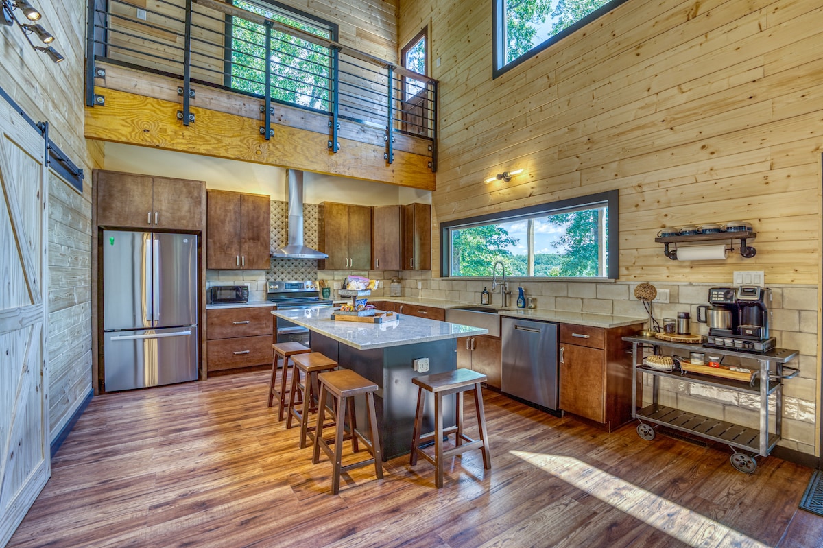 Una cabaña Still Point es el refugio perfecto. Con una hermosa vista de las montañas Ozark desde tu terraza protegida, puedes escapar fácilmente a la naturaleza. El espacio acogedor y eficiente hace de esta cabaña el escenario perfecto para tu escapada con amigos y familiares. Con una cama tamaño queen en la planta superior, un sofá cama tamaño queen de espuma viscoelástica y una silla convertible Cordaroy tamaño queen (solo lo suficientemente grande para dos niños pequeños), hay mucho espacio para todos. ¡El jacuzzi recién instalado también!