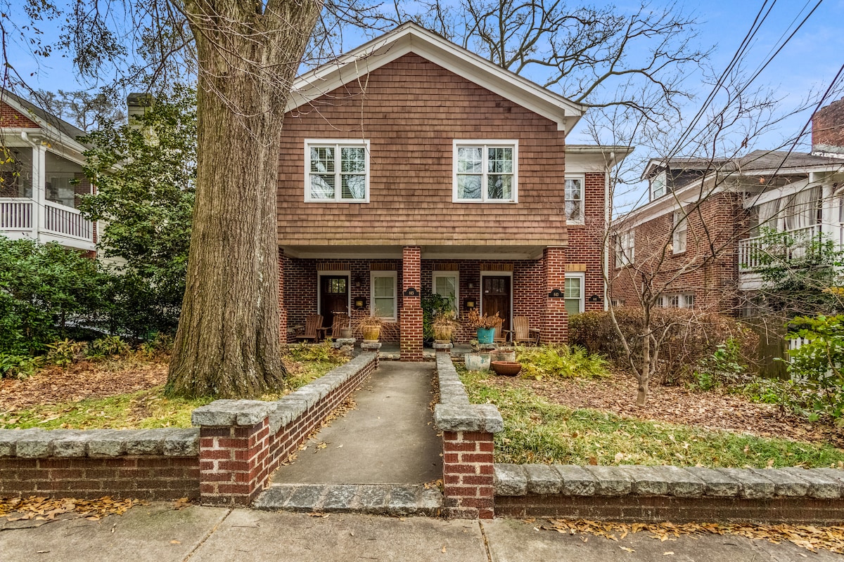 La histórica Monroe House fue construida en 1920, recientemente mejorada con acabados más refinados. El apartamento de Airbnb en la 1.ª planta de la Monroe House ofrece lujosas camas tamaño king y queen, una cocina totalmente equipada, lavandería completa, wifi de alta velocidad y espacio para entretenerse. La zona trasera ofrece dos plazas de aparcamiento privado, a poca distancia a pie del mercado de Ponce City, Whole Foods, Trader Joe's y Piedmont Park. El Airbnb es el cómodo apartamento de la 1.ª planta de un dúplex. Es apto para niños y mascotas.
