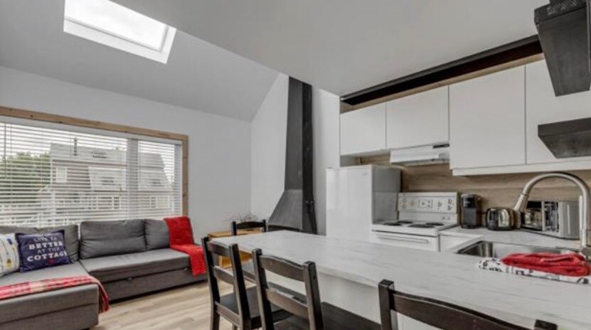 No parties allowed. 6 people maximum. Beautiful apartment located on the 2nd floor. Unique view and direct access to the St. Lawrence River. Open-concept space with cathedral ceiling including kitchen, dining room, and living room. 2 bedrooms with queen beds and 2 sofas that convert into single beds. Shared access to a lookout, heated pool, fire pits, BBQ, Etc. CITQ #310546 Another unit available on the 1st floor of the same building: airbnb.ca/h/petit-paradis-du-st-laurent