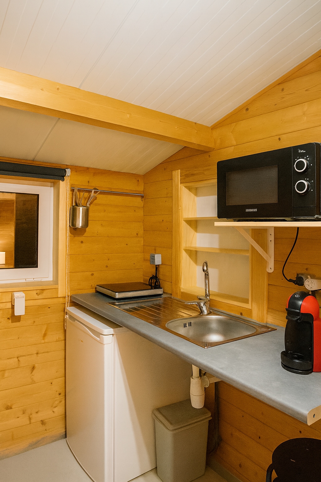 Laissez-vous envelopper par la tranquillité du nord du Portugal et profitez d’une escapade en pleine nature avec vue dégagée sur les montagnes. La cabane dispose d’un grand lit confortable, d’un coin cuisine compact et fonctionnel pour des repas simples, d’une terrasse couverte avec rétroprojecteur, d’un jardin privatif clôturé, d’une Smart TV et d’un barbecue. Bois et charbon non inclus, pack « coin du feu » disponible sur place. Parking à proximité. Piscine accessible en juillet et août.
