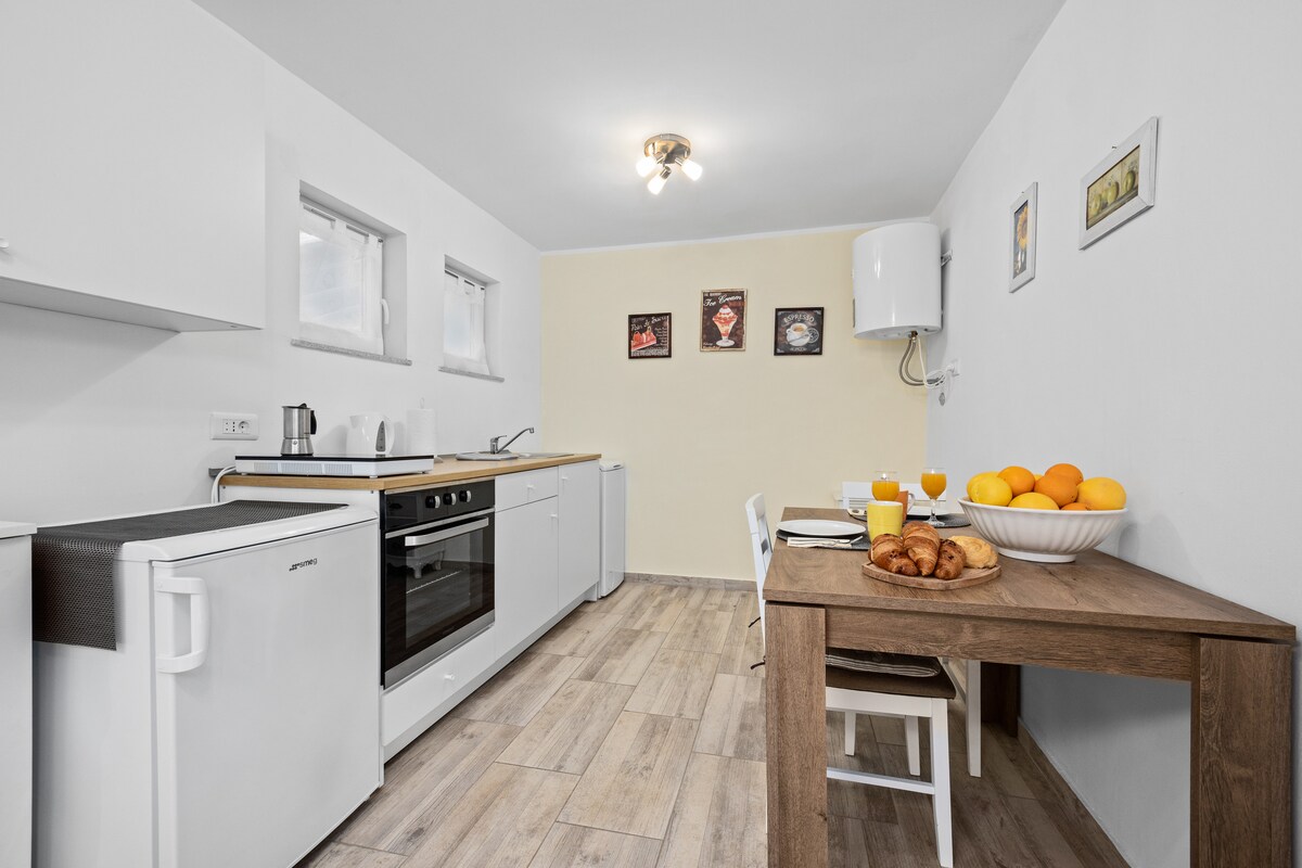 Este acogedor apartamento se encuentra en un barrio tranquilo de Rovinj. La distancia al centro de la ciudad de Rovinj es de 15 minutos a pie y la primera playa (playa Porton Biondi) está a 10 minutos a pie (800 metros). El mercado de alimentos más cercano está a 5 minutos a pie. La tienda Kaufland y el centro comercial RETAIL PARK Rovinj están a 650 metros. Al final de la calle, a un minuto a pie (60 metros) del apartamento, hay un APARCAMIENTO gratuito y seguro para tu coche. ¡SE ADMITEN MASCOTAS! :)
