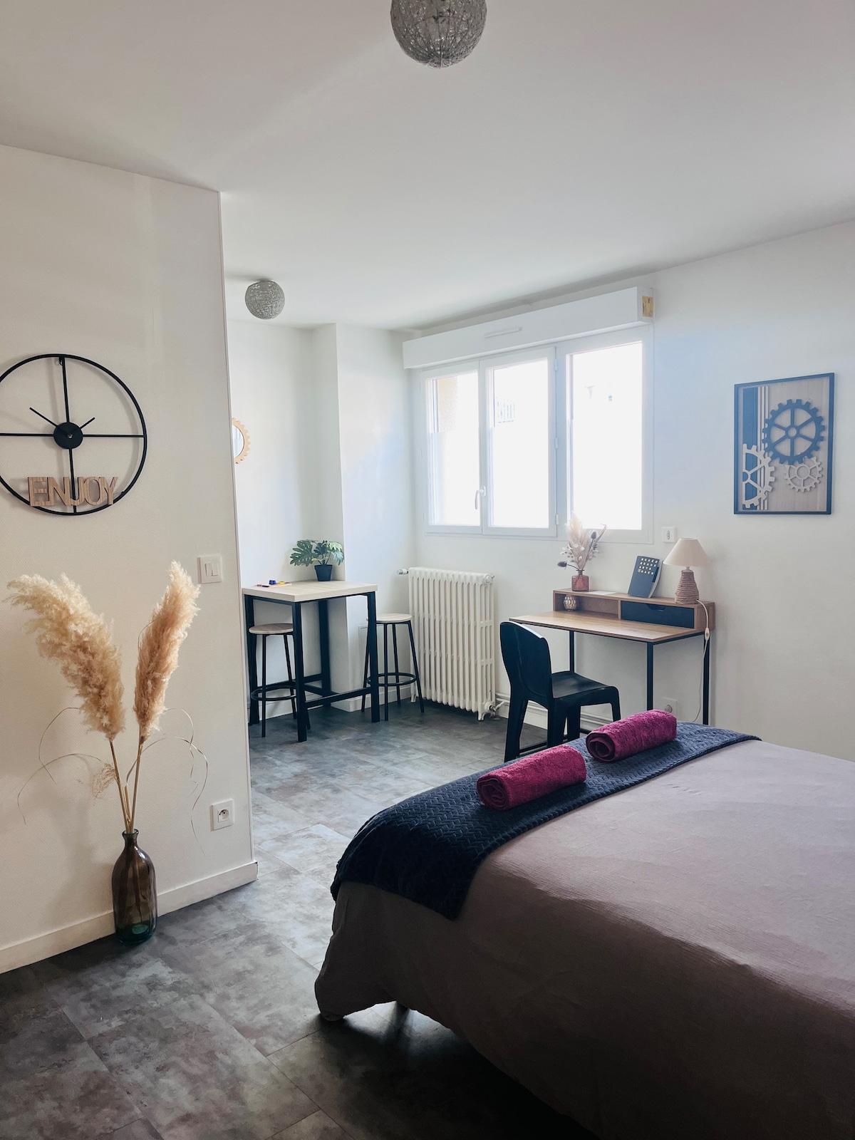 Totalmente equipado para 2 personas, idealmente ubicado, “Le 2” te da la bienvenida en el corazón de un barrio notable: - El puerto de Caen, sus restaurantes, tiendas locales, bares y mercado a 200 metros. - El centro histórico de la ciudad de Caen, a 300 metros. - El pequeño distrito histórico de Vaugueux y sus restaurantes a 400 m de distancia. - El famoso castillo de Caen a 600 metros, construido alrededor de 1060 por William the Conqueror. - Abbaye-aux-Dames y su parque regional a 800 metros de distancia.