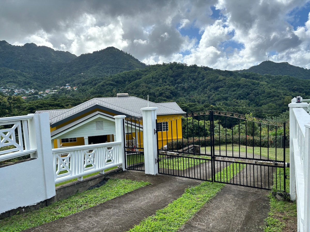 Perfecto para grupos grandes, nuestra casa de huéspedes de dos niveles está a 25 minutos del aeropuerto, a 20 minutos de Kingstown y de nuestras encantadoras playas de villa a 10 minutos a pie (cuesta abajo de la playa, cuesta arriba hasta la casa). Los 6 dormitorios privados tienen aire acondicionado y la suite principal tiene su propio baño privado. Los baños tienen agua fría y caliente con cabezales de ducha de alta presión. La casa está convenientemente cableada para 110 V y 220 V y ofrece TV por cable y wifi. Nuestra cocina está totalmente equipada y siempre equipada con café y té.