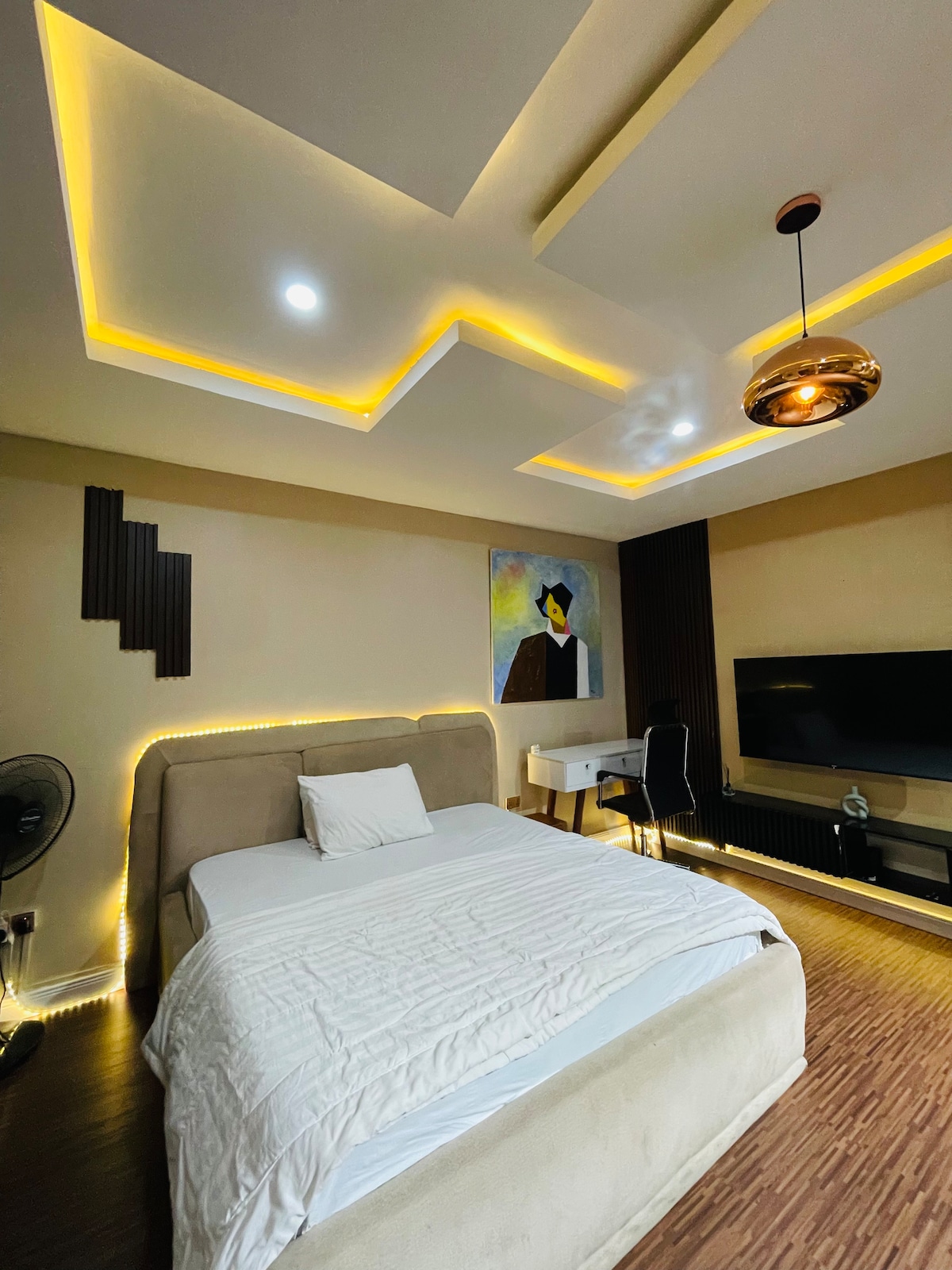 2 spacious bedrooms with premium bedding 2.5 bathrooms PS5 + Smart TV Fully equipped kitchen Private balcony High-speed WiFi Dedicated workspace with a 32” curved Dell monitor 24/7 power, water & security Treadmill and Arbs Stretcher available for workouts Very Secured Estate, CCTV & SELF Check-in