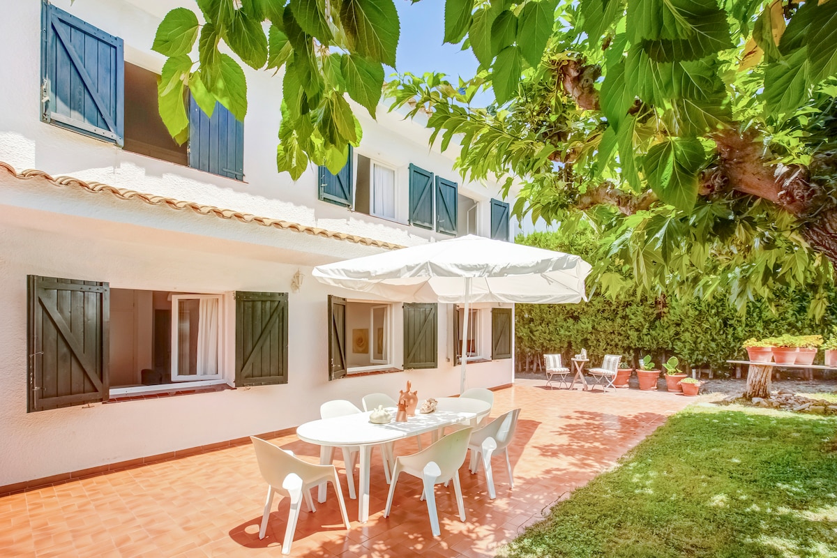 Hermosa casa junto al mar Casa de playa soleada. Creixell Tarragona España Capacidad 8 personas Casa moderna de estilo mediterráneo de tes plantas, dos terrazas y balcón. En la planta baja de la casa hay un bonito apartamento con espacio para 4 personas. Si ambas propiedades se encuentran disponibles es posible alquilar las dos propiedades para un grupo de hasta 12 personas Se accede a ambas propiedades a través de una pequeña zona ajardinada directamente desde el paseo marítimo