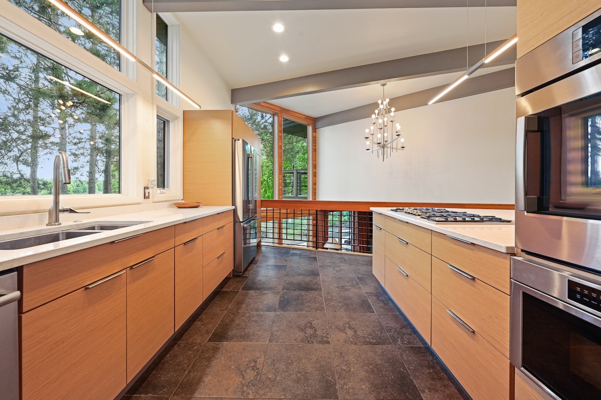 Ubicado en un barrio tranquilo y arbolado, The Raven cuenta con todas las comodidades y ventajas del hogar, a la vez que ofrece la paz que solo se obtiene cuando te alejas de todo. Estamos a solo diez minutos de encantadores restaurantes, tiendas locales, la cadena de lagos y a solo cinco minutos del parque estatal Hartman Creek y el sendero panorámico nacional de la Edad de Hielo. Ya sea para relajarte, recargar energías o explorar, bienvenido a tu moderna escapada al bosque. Bienvenido a The Raven.