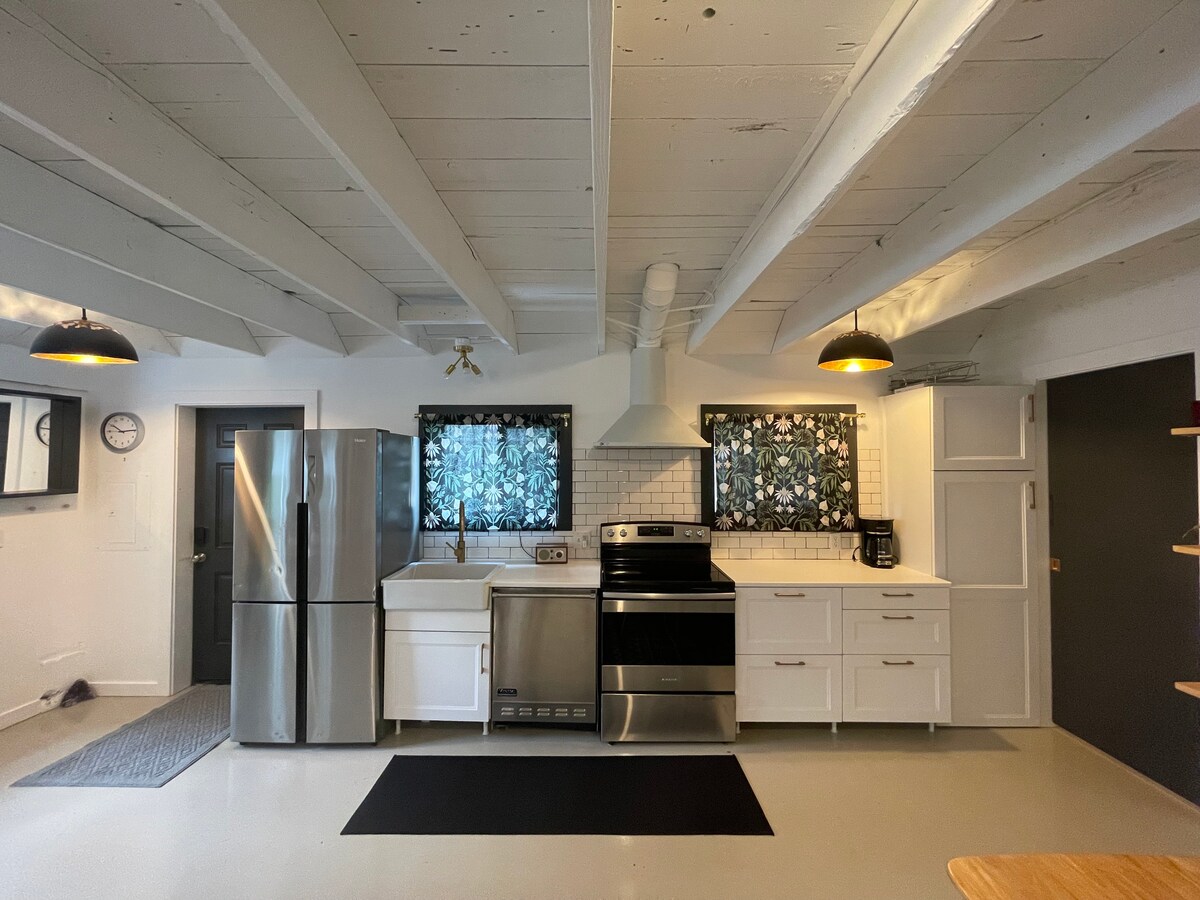 Elegante loft de 2 dormitorios en el paraíso culinario del distrito artístico de Alberta. Capacidad para 4 personas, 1 baño, 1200 pies cuadrados. Destacado: hermosa bañera de inmersión de jardín onsen japonés de roca de río para la máxima relajación. (Compartido con los huéspedes de la cabaña cuando está ocupada) Servicios: wifi, Netflix, cocina totalmente equipada. A pocos pasos de aclamados restaurantes: Gabbiano's, Dame, Lil Dame. En las cercanías: Expatriate, Take Two, Wilder, Jet Black Coffee. Parada de autobús n.º 72 en la puerta. El mejor panorama artístico y culinario de Portland desde tu sofisticado refugio.