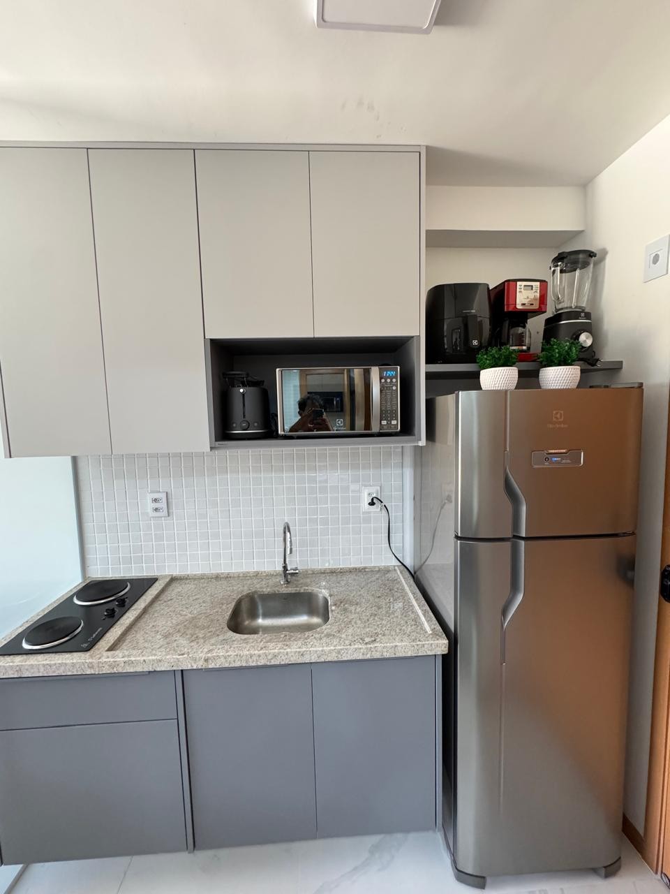 Disfruta de este elegante lugar. Estudio Nova con una hermosa vista al mar, 25 m2 en un edificio con maravillosa piscina y gimnasio. Edificio nuevo con conserje las 24 horas. Ubicación privilegiada con el centro comercial a 400 metros y delicatéssen junto al edificio. La playa está a 150 m y el faro de Barra a 400 m. Tiene un garaje giratorio No se admiten visitas. Solo para anfitriones registrados. Inapropiado para niños de 2 a 12 años debido a la ausencia de una red de seguridad. Está en el circuito de carnaval