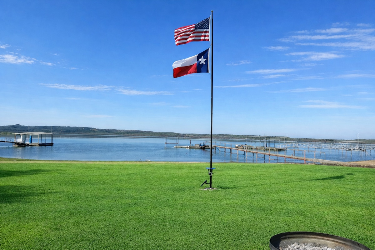 Gorgeous lake getaway only 7 miles from Rocker B! This brand new 3 bed, 2 bath vacation rental is just steps from the shore of Possum Kingdom lake. With a stocked kitchen, covered patio & bbq grill, games for all ages, fenced yard and boat parking, all you need is a readiness to relax. After a day of fun in the sun, spend the starlit hours making s'mores by the fire pit, soaking in the hot tub while listening to the lake waves, or watching amazing sunsets while lounging on the boat dock.
