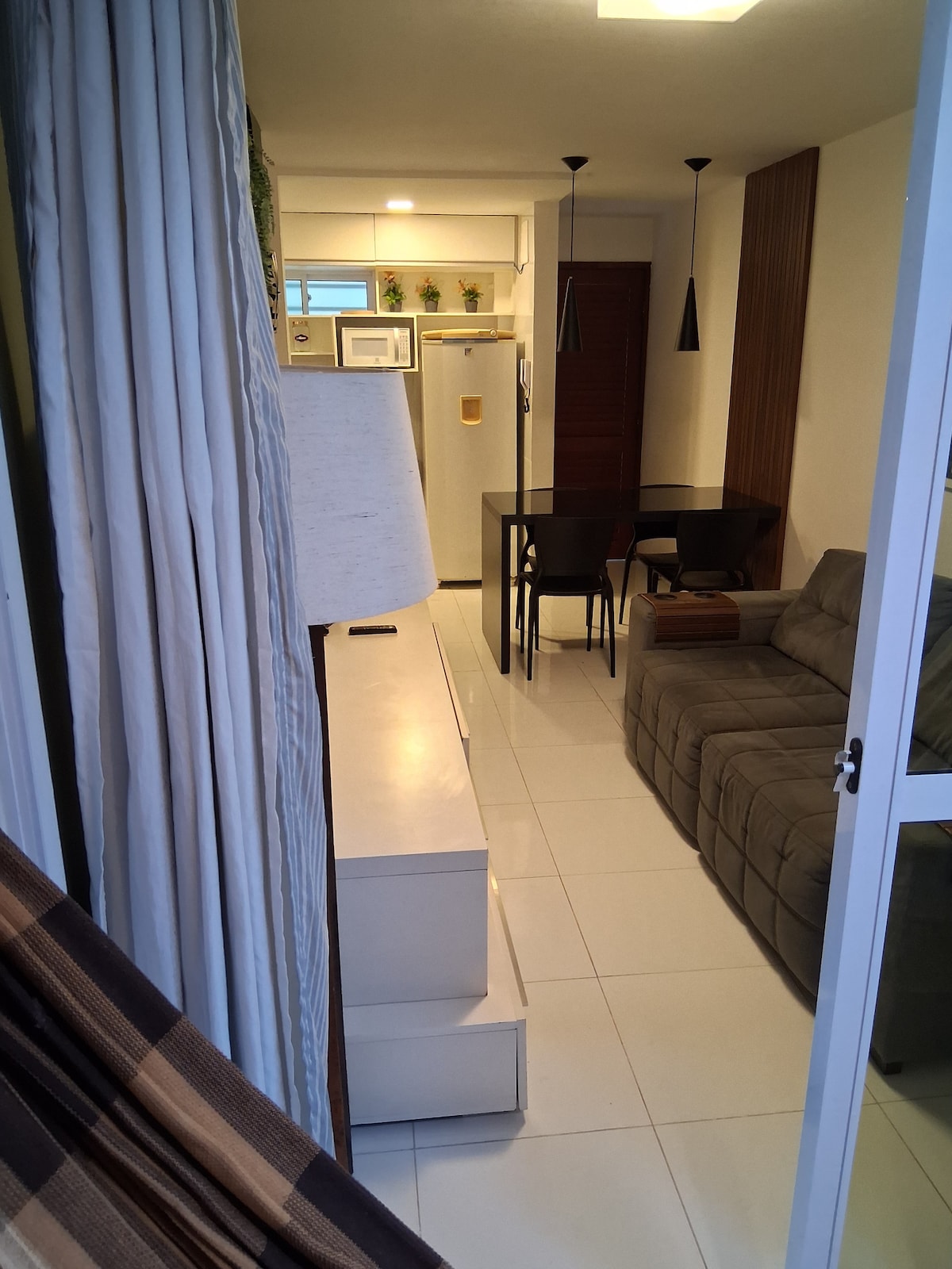Flat mobiliado de 25m² na Praia do Bessa, a 700m do Caribessa. Vista sul para o mar, varanda com rede, cama de casal e sofá-cama para até 4 pessoas. Piscina com borda infinita, rooftop, academia, área gourmet, snooker bar, lavanderia coletiva e 1 vaga rotativa. Cozinha equipada, Wi-Fi, TV, ar-condicionado. Localização estratégica, ideal para morar ou alugar. Não aceita pets e visitas. Não oferecemos café da manhã. Regras claras garantem conforto e tranquilidade.