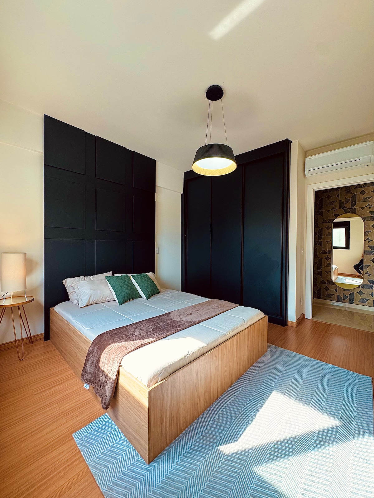 Welcome to the charming EMIRATES apartment in Residencial Scenarium, the best location in Pouso Alegre. This high-standard apartment was designed for guests who value modernity, practicality, comfort, and beautifully decorated spaces. Every detail was chosen with extreme care to provide you with a memorable experience! We have a covered parking space, an outdoor heated pool, a washer and dryer, a Smart TV, and a bedroom with air conditioning that also serves the living room. Come stay with us!