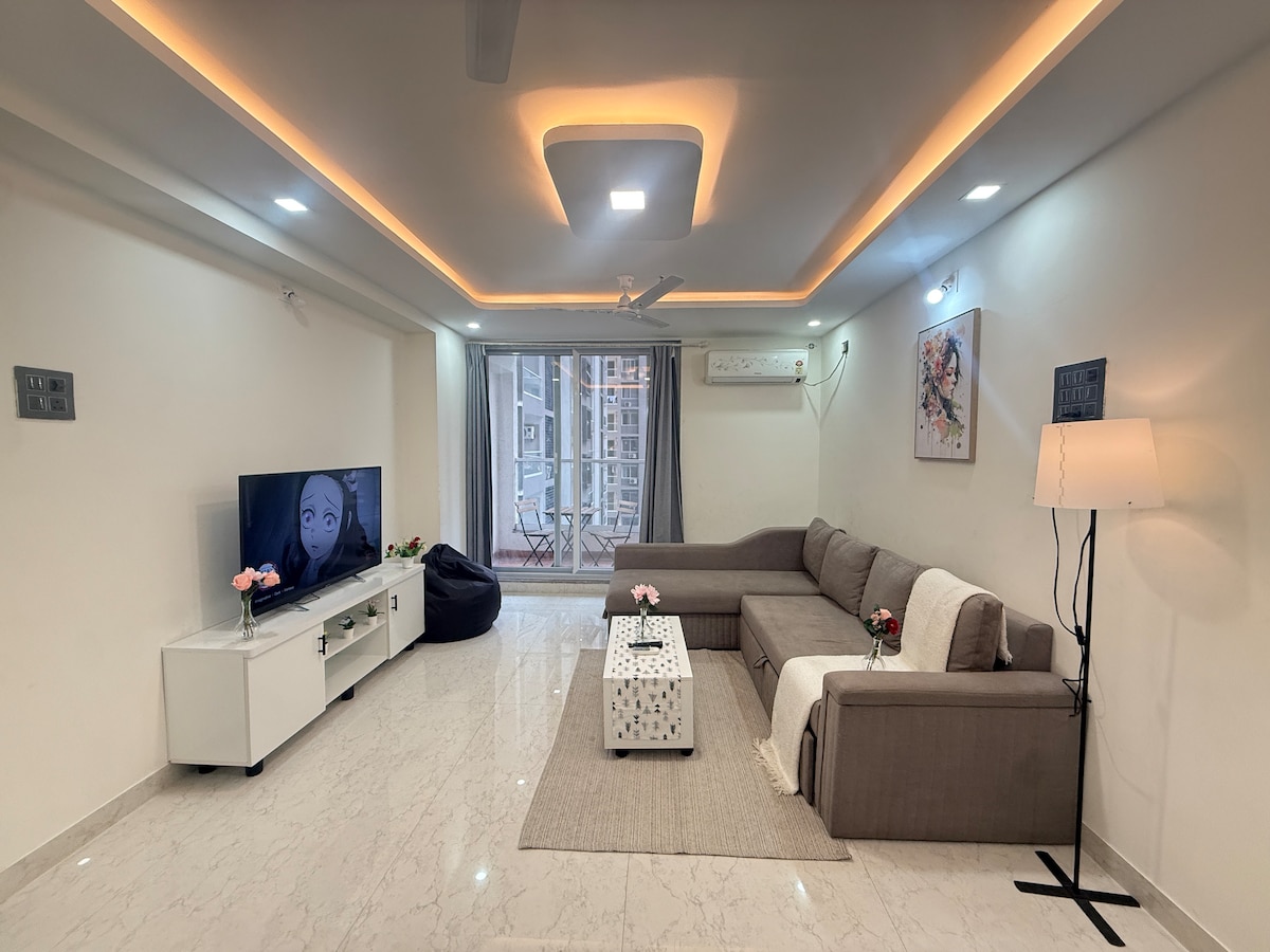 Welcome to Your Modern Day-Chic 1-Bedroom Apartment Retreat near BKC! With its minimalist design, ample workspace, entertainment options, and essential amenities, it caters to the needs of both business and leisure travelers! Features: ★ Large Work-Desk ★ Free High-Speed WiFi ★ Smart TV ★ Tata Sky with all HD Channels ★ Sound Bar ★ Microwave/Fridge ★ Air Fryer ★ Air Purifier ★ Water Purifier Book now and experience the perfect blend of modernity and comfort!