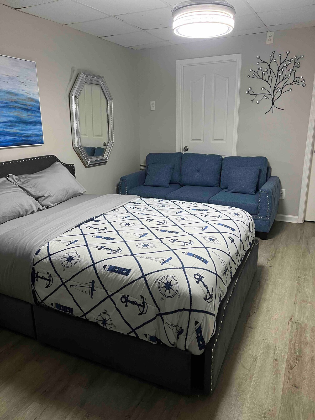 • Ubicación privilegiada: 10–15 minutos a Hiram, Dallas, Powder Springs y Douglasville • Cocina equipada: utensilios de cocina, electrodomésticos, café y té de inicio • Configuración acogedora: cama tamaño king, persianas opacas, televisor inteligente de 65" • Entrada privada: elegante suite en el sótano sin espacios compartidos. • Servicios: toallas, wifi, lavadora/secadora. • Llegada fácil: cerradura inteligente, estacionamiento privado para dos.