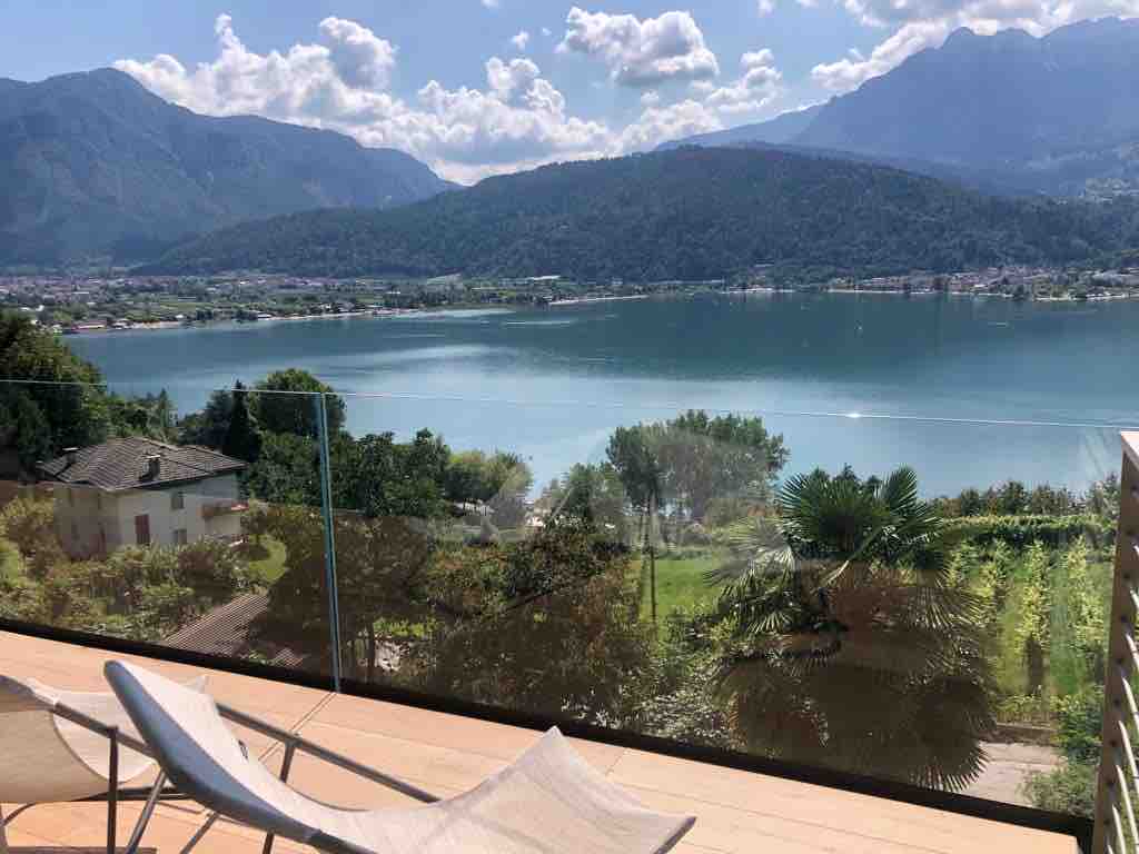 Appartamento con magnifica vista lago al piano rialzato di una villetta, completo di elettrodomestici, stoviglie, utensili, cucina e pentolame, lavastoviglie, lavatrice e prima pulizia. È ad un minuto da una bellissima spiaggia sul lago di Caldonazzo. Comprende accesso privato con possibilità di parcheggio macchina e terrazzo esterno con bbq. La casa è nuova e alcune finiture secondarie verranno via via ultimate.